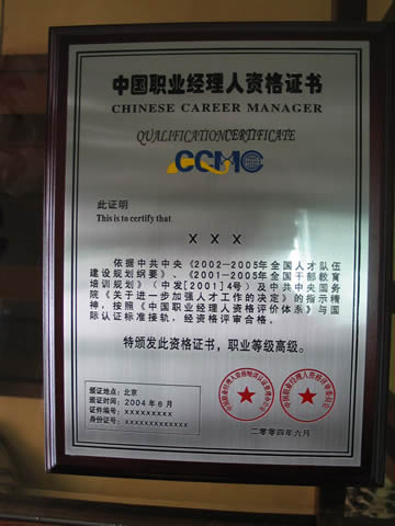 中国职业经理人(CCMC)资格证书已正式纳入国家职业资格考试体系,根据国家有关规定,今后,“凡从事企业经营管理工作,必须具备企业经营管理职业资格,未取得职业资格的,企业不得与其签订劳动合同”。 CCMC资格证书是对经营管理者的认证,也是对个人自身价值的认证,是被社会或企业认可时的极有价值的个人品牌形象资产,受到用人单位和政府的认可。获得此证书您可一举跻身于职业经理人阶层,进入全国经济人才库,录入“CCMC”人才网供全国查阅,实现自身价值的急剧增值。