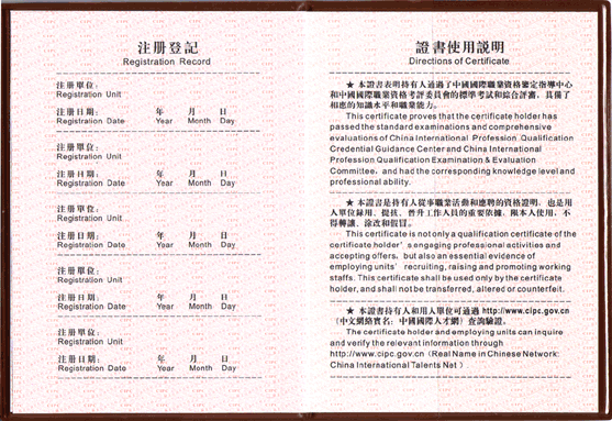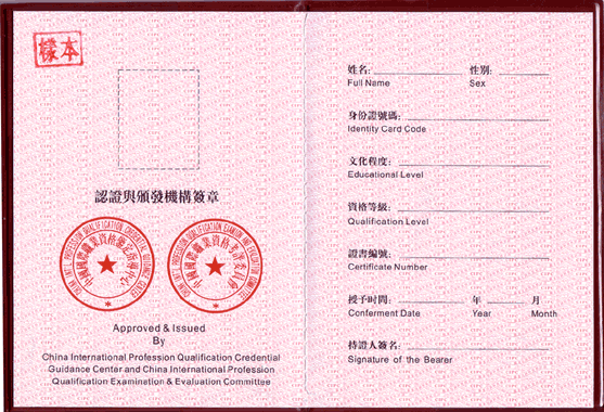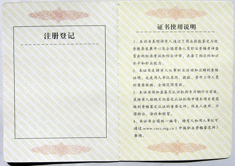 ◇ 中华人民共和国COCI商业人员职业资格证书样本